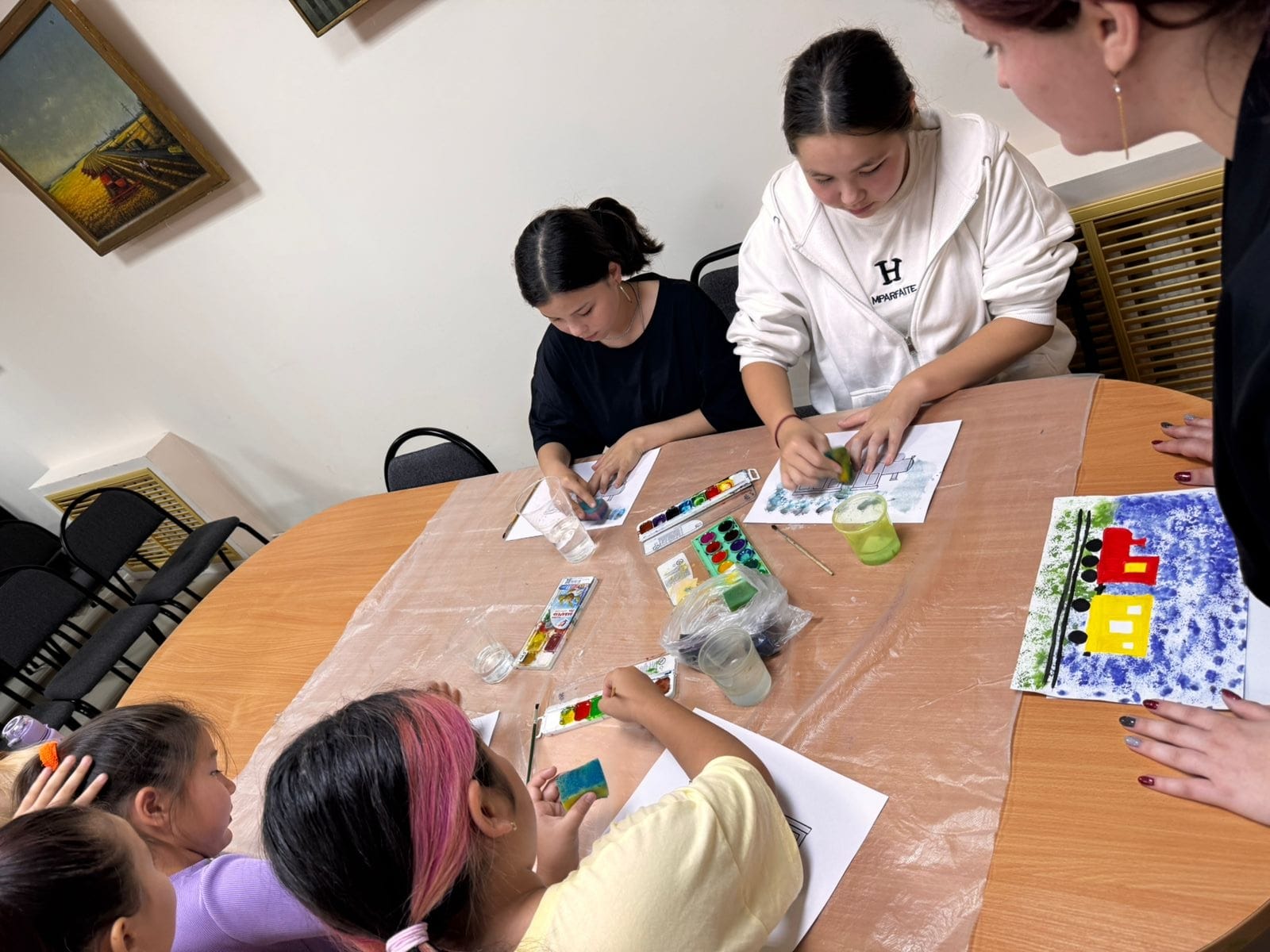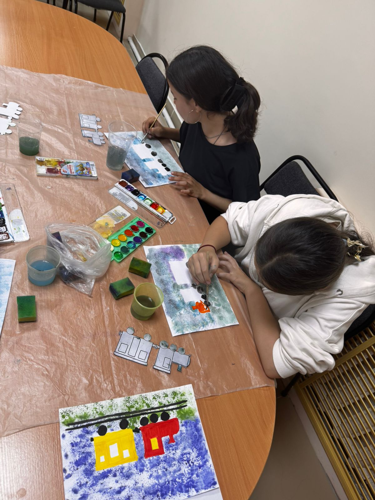 В ходе занятия ребята разгадывали загадки, участвовали в играх и собирали тематические пазлы. Завершился мастер-класс творческой работой в нетрадиционной технике рисования — созданием ярких поездов с помощью губки и трафарета.